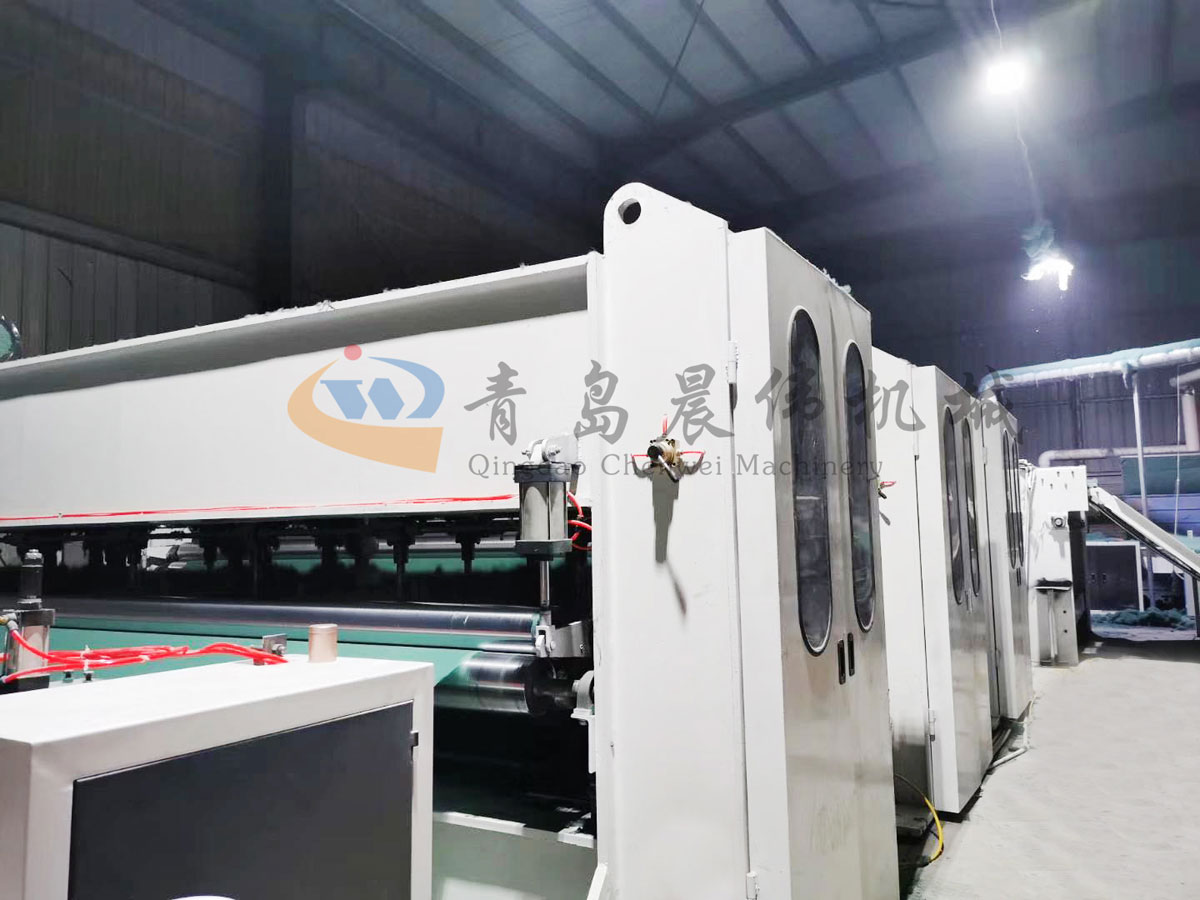 5. CWPW-鋪網(wǎng)機(jī):用于將梳理纖網(wǎng)通過移動小車交叉折疊為所需幅寬和定量的多層纖網(wǎng),以供后道工序使用。鋪網(wǎng)輥采用特殊結(jié)構(gòu),加裝壓網(wǎng)輥和導(dǎo)流板,不飄網(wǎng)不起皺,五只大功率電機(jī)精確控制各部件的運(yùn)動,電動輸出簾高度調(diào)節(jié)裝置