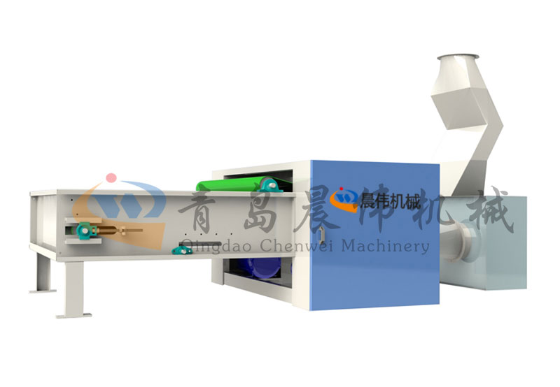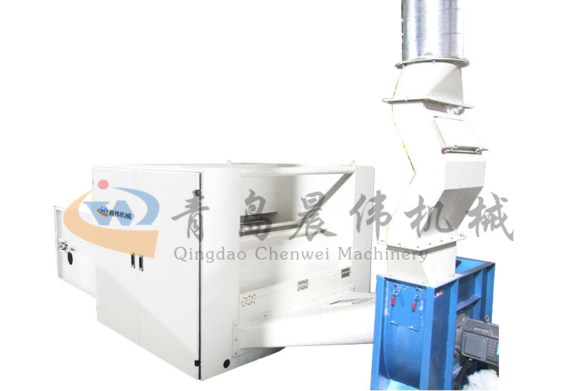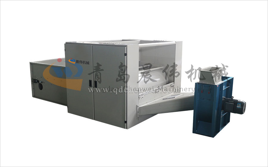 各種不同纖維被放入水平輸送簾,經(jīng)壓棉輥和對輥羅拉喂入,經(jīng)輸棉風機以適量的風量輸送纖維原料供后道工作使用;并配備橋式除鐵裝備。